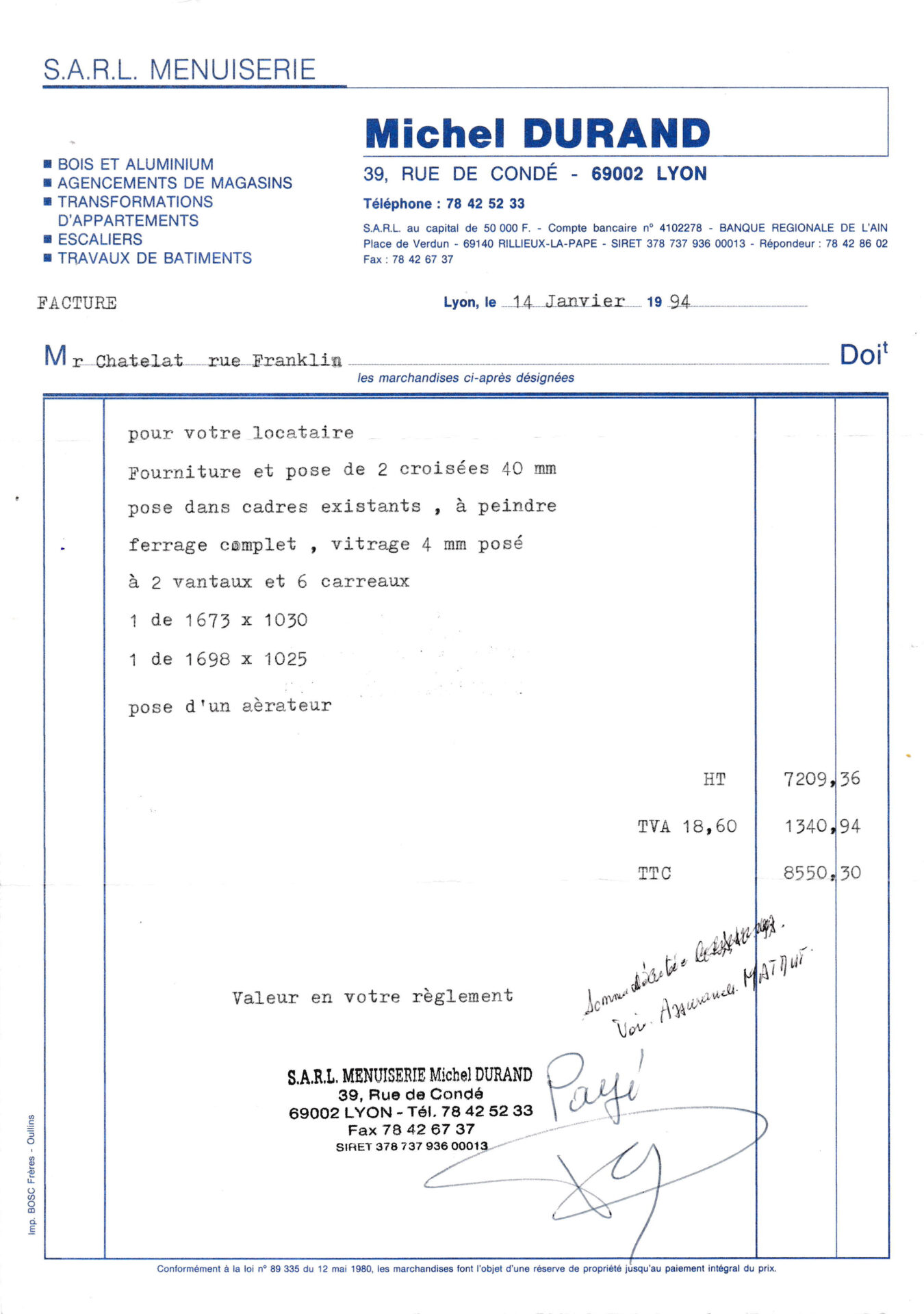 Après le mythique Michel Durand, deux dirigeants se sont succédés sur 10 ans jusqu'à notre arrivée en 2015. Nous avons donc eu à coeur de continuer le travail de M. Durand et être une menuiserie de quartier par sa proximité, sa compétence et son service.